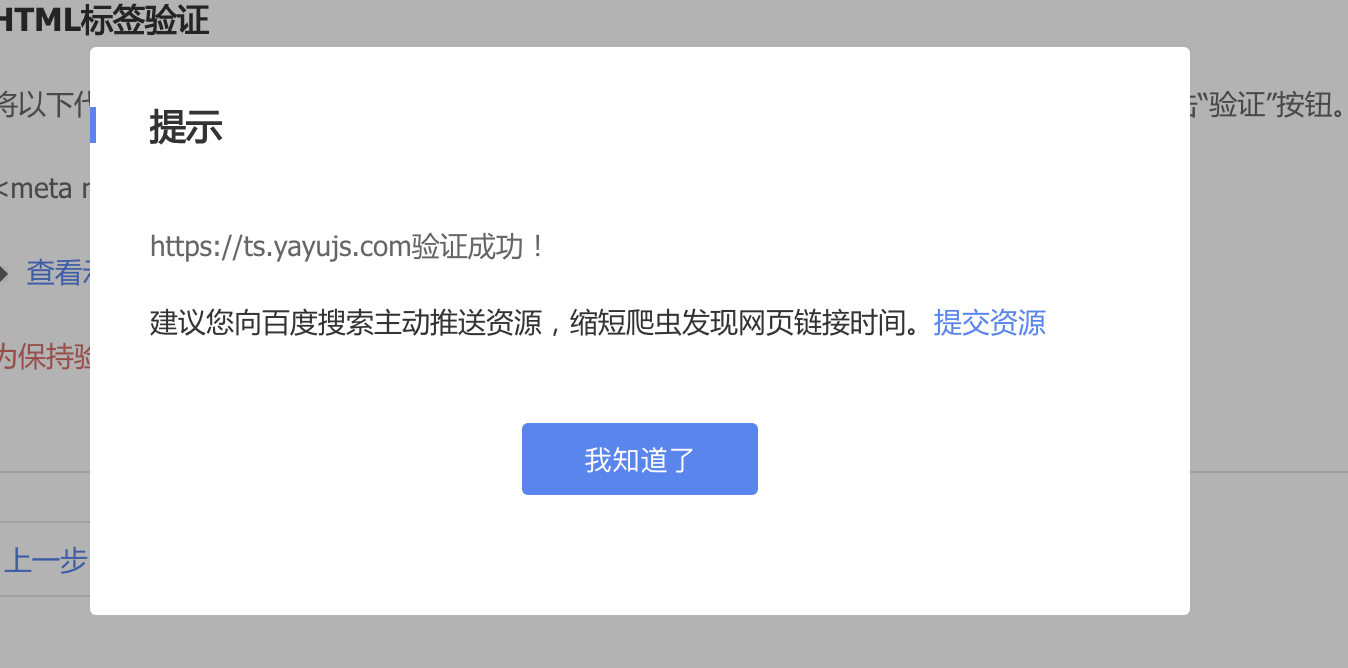 然后点击「完成验证」,就会出现:
