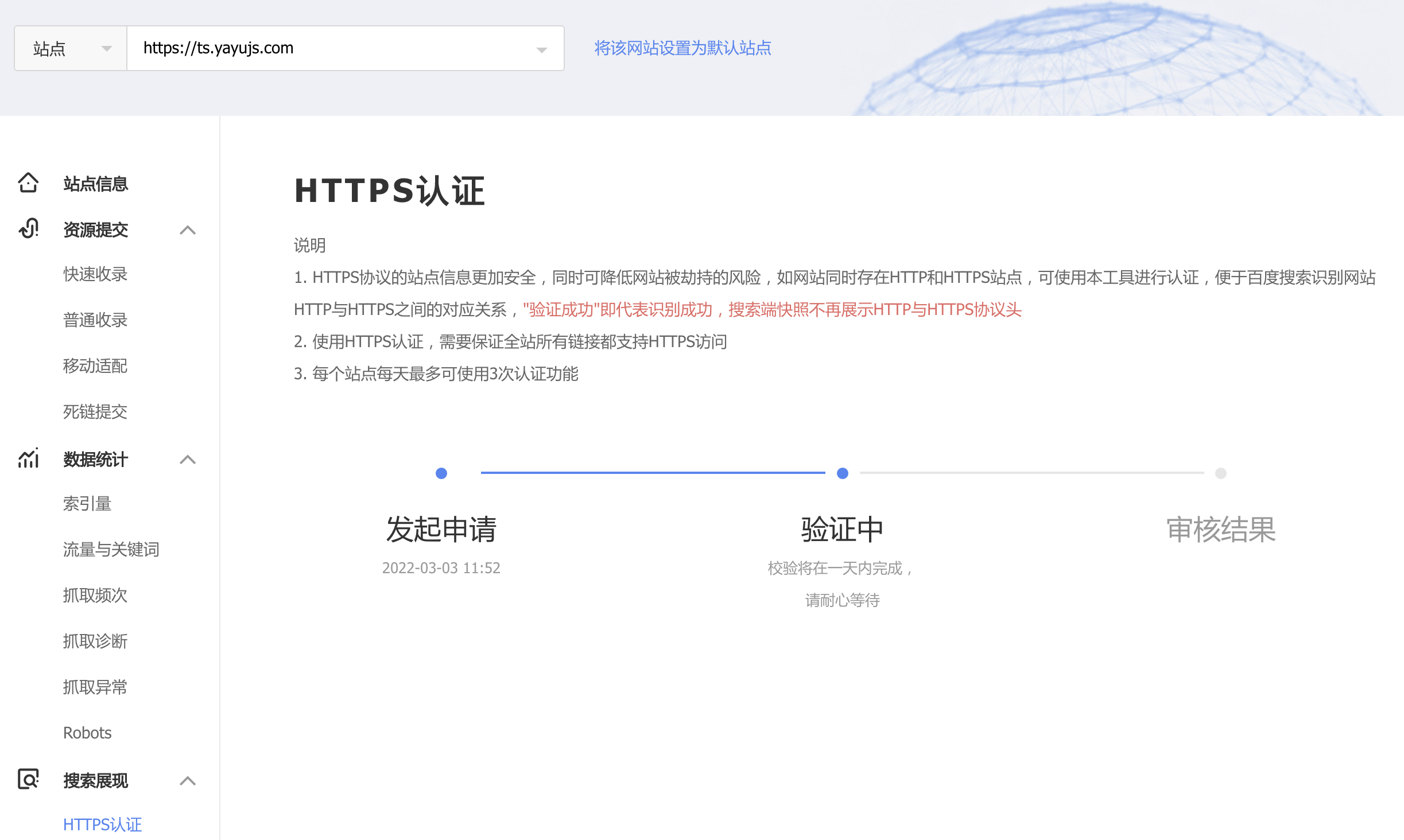 第三步:验证网站