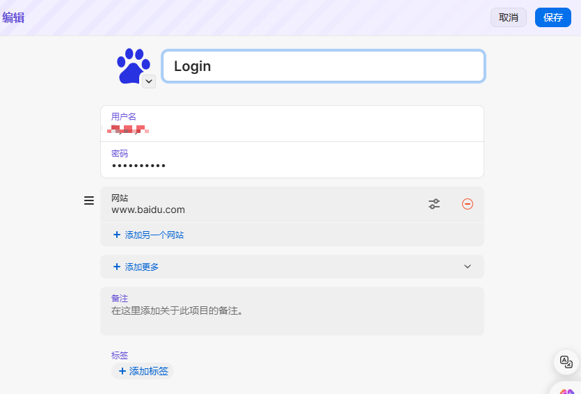 - 软件里存的信息主要是:平台名,平台地址,账号名,密码。邮箱,手机,