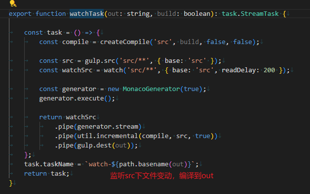 具体编译细节就不研究了,现在的主流已经不用glup这种原始的ts编译工具了。没有学习价值。