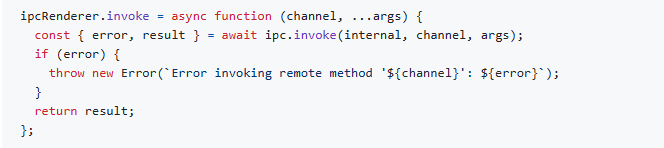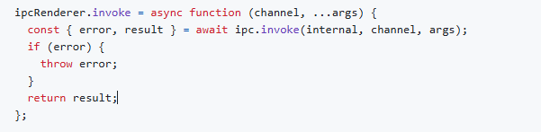 官方意思是说应该把main进程当服务端,服务端如果有异常,直接发给客户端,是不安全的,这样会暴露隐私。所以官方还是建议,如果要给错误信息给前端,应该要自己包装一下。
