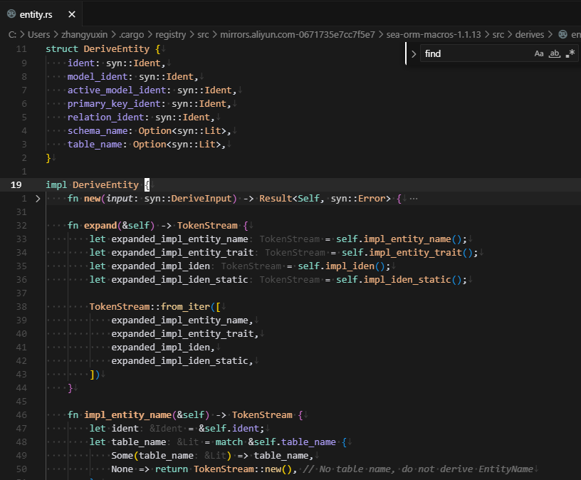 }最终就是帮你的entiy实现了DeriveEntity的相关方法